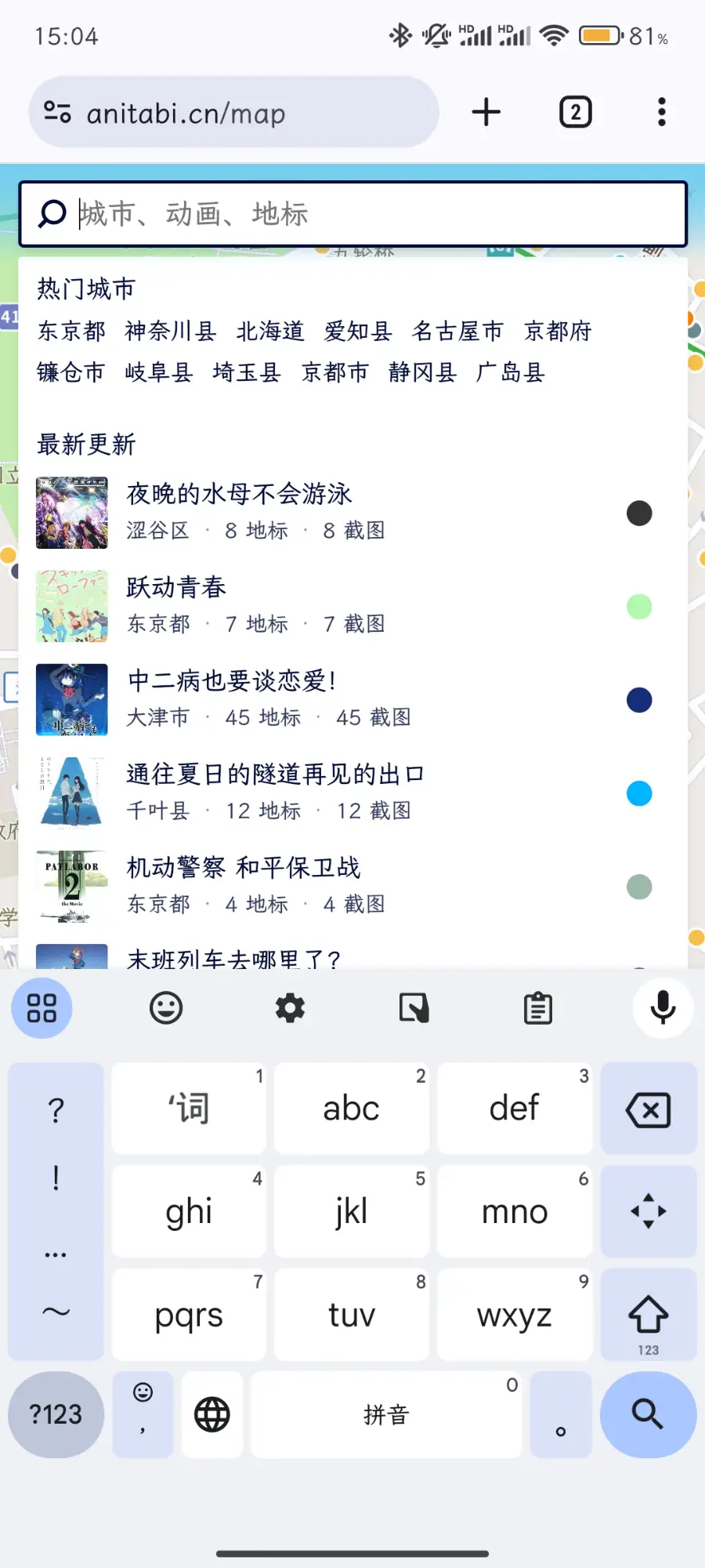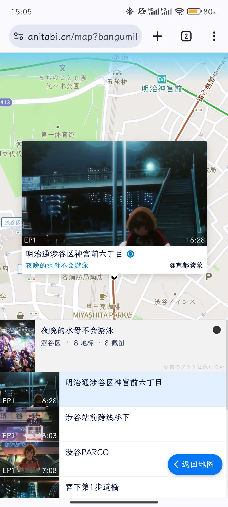 网站的使用很简单。只需要输入你想要巡礼的 IP 名称,如果列表里有人整理,那么点开就可以看到地图标点以及对应的截图了。