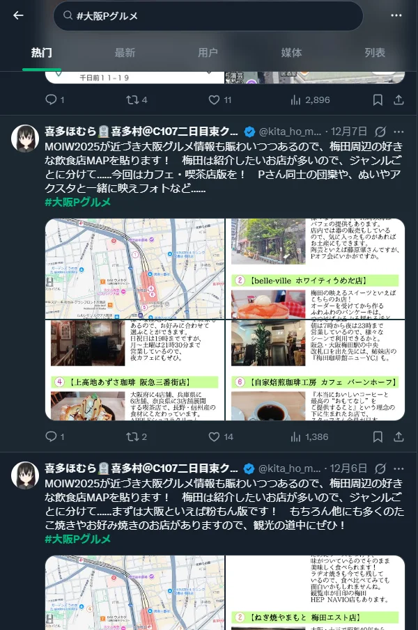 当然,推荐还是使用X然后直接访问这个tag,可以看到非常多的内容。主要以大阪的美食为主。