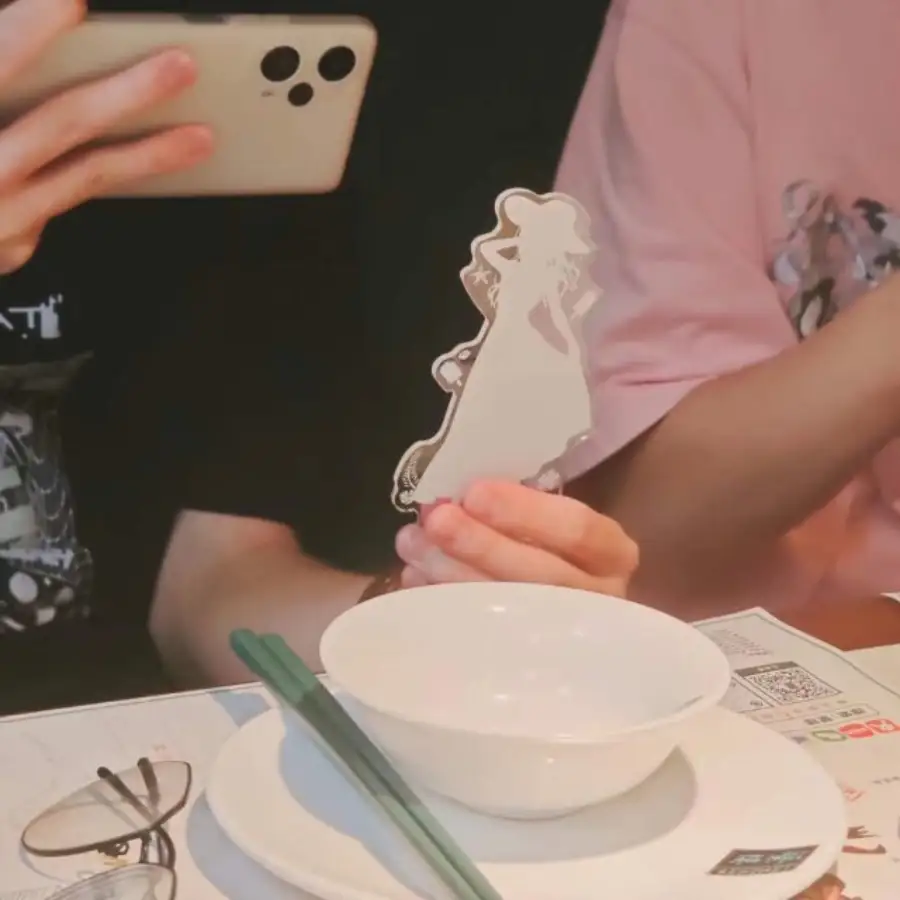吃繁楼的时候发现上次带出去拍照的 soyo 立牌还在我的挎包里,掏出来拍了一张,结果我自己拍的虚焦了,被坐在对面的小蔡拍下来了。
