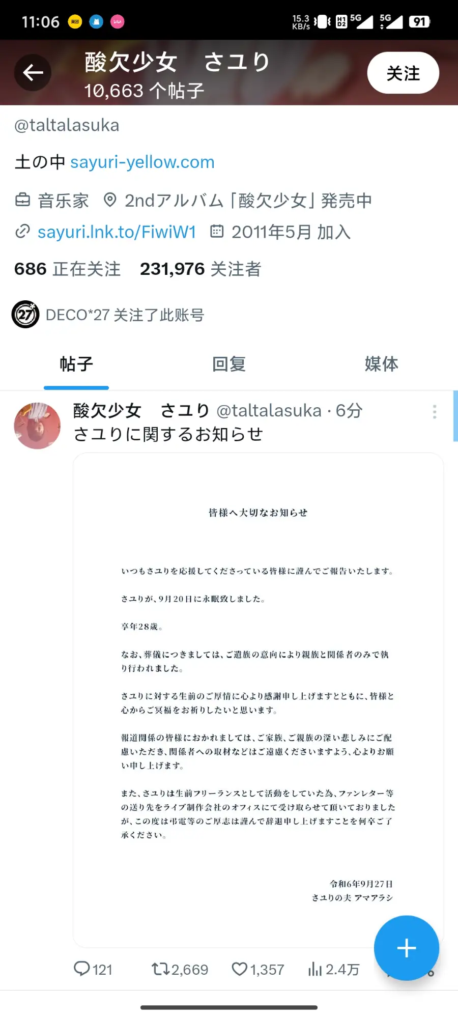 这周刚好,嗯,有件不幸的事情。sayuri 去世了,让我不由得再三思考到底要不要去一下河口湖。因为刷着刷着就看到一句话。