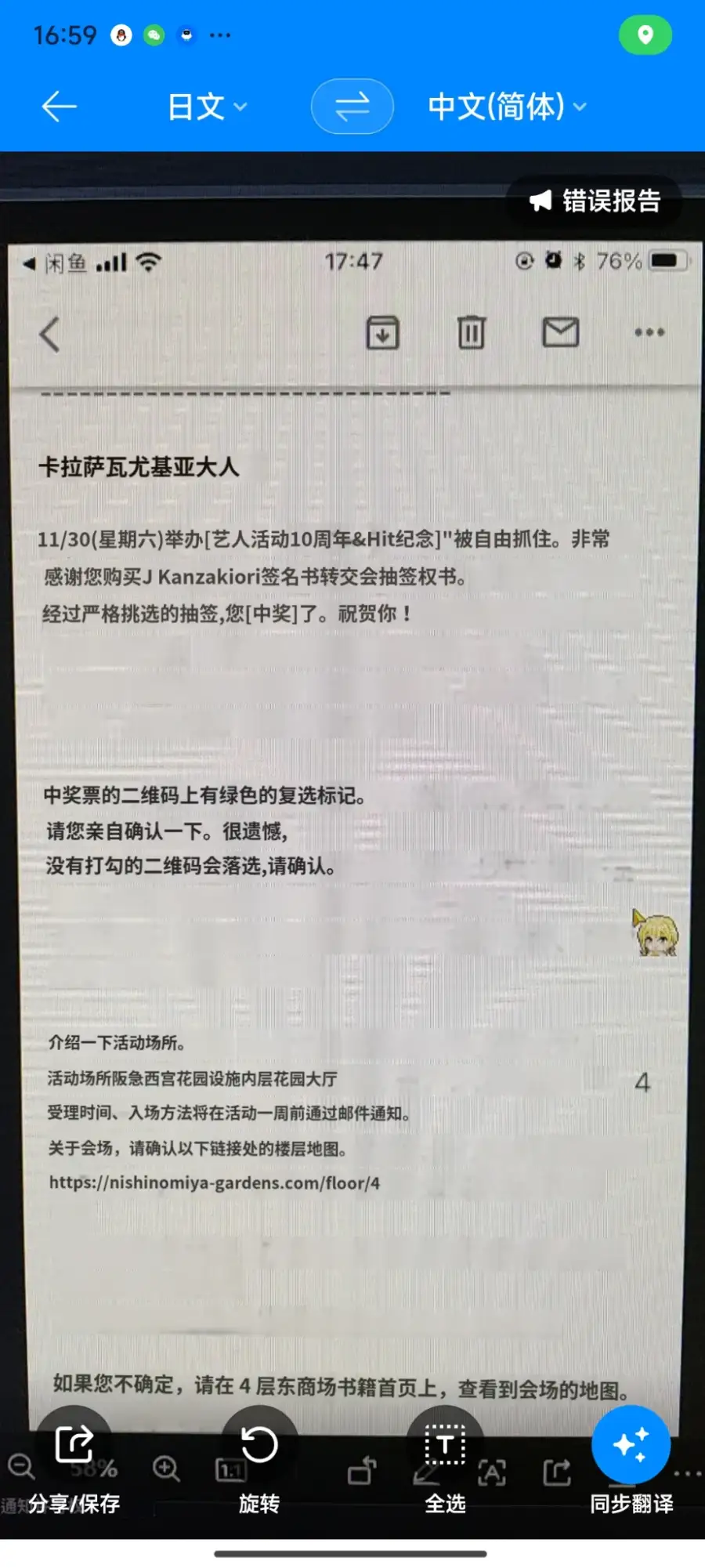 准确来说,其实并不是我抽的,而是让代抽帮我抽的,因为沟槽的 yahoo 账号很容易封号,一个不小心没用日本 IP 说不定就封号了。于是那天下午我等了大概40分钟才收到我抽的票的结果。