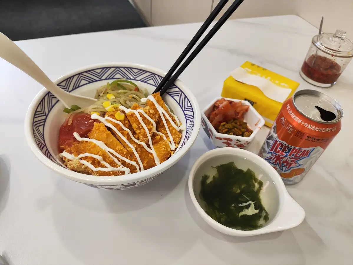 虽然说公司的地段确实不错,但是也带来了一个后果——就是附近的吃的不是太少就是太贵了,不过好在公司楼下有一个不在购物中心里面的烤肉饭,在这段最后在公司上班的日子里我都是在这里解决我的中饭的。