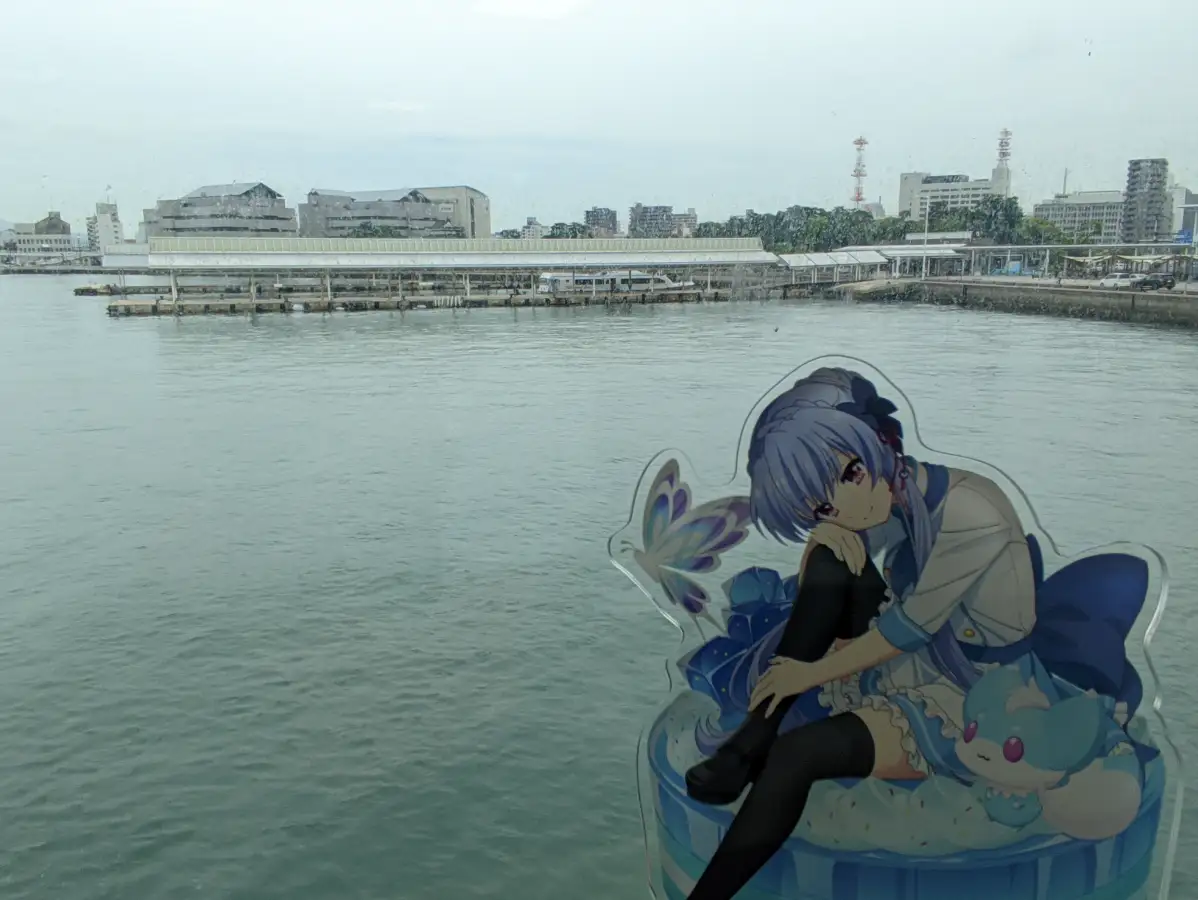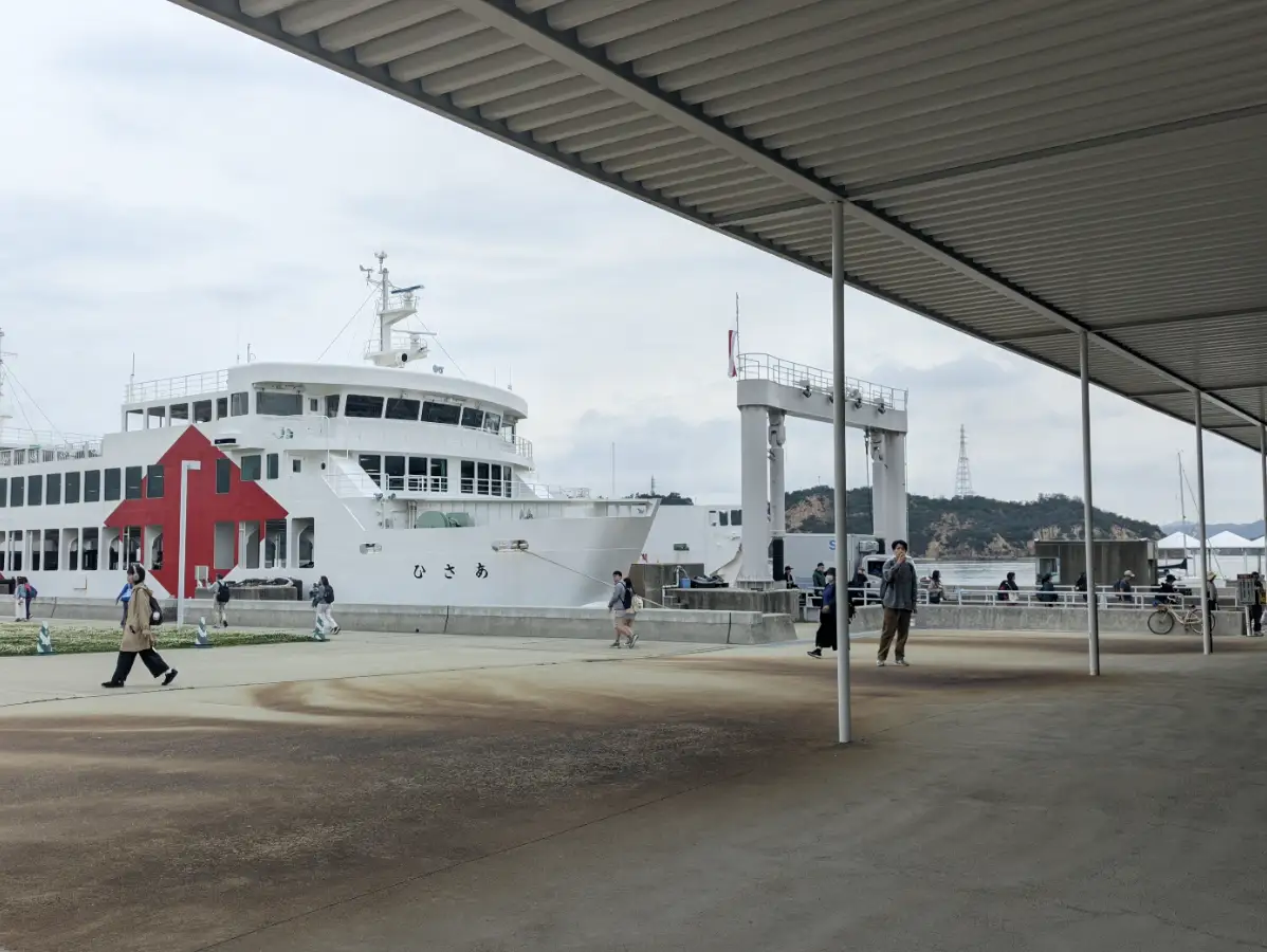 六点半,接驳大巴准时到达。上了车大概二十来分钟我们就到达了高松东港,而且下车直接就可以走到登船口,这点必须给个好评,基本上可以说是无缝换乘了。就是不知道是不是因为天气原因,开船的时间比预定差不多晚了半个小时,这倒是让我开始有些担心起到达的时间。
