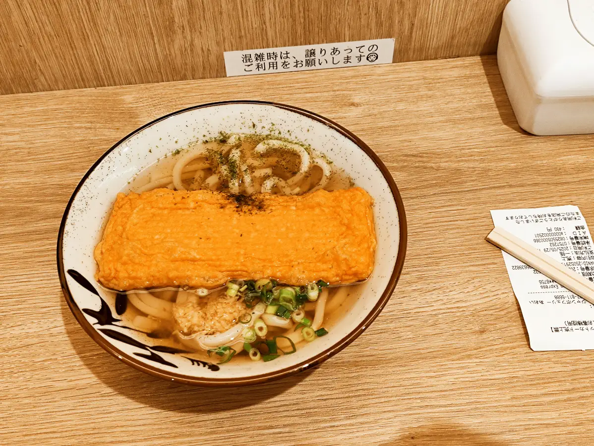 船开出后,因为没有吃晚餐,这个时候我的肚子已经有些饿了。因为来之前做了攻略知道船上有非常平价的乌冬面,所以便走到了吃饭的地方。一看一碗乌冬面在500-600日元上下,果断点了一份。不得不说果然四国是乌冬的大岛,哪怕是船上的乌冬面在此刻都做的非常好吃,而且似乎四国的乌冬不会像关东的拉面那样重盐重油,口味非常符合中国人的口味。在吃完了乌冬后,我甚至一口气把碗里的汤都全部喝了。