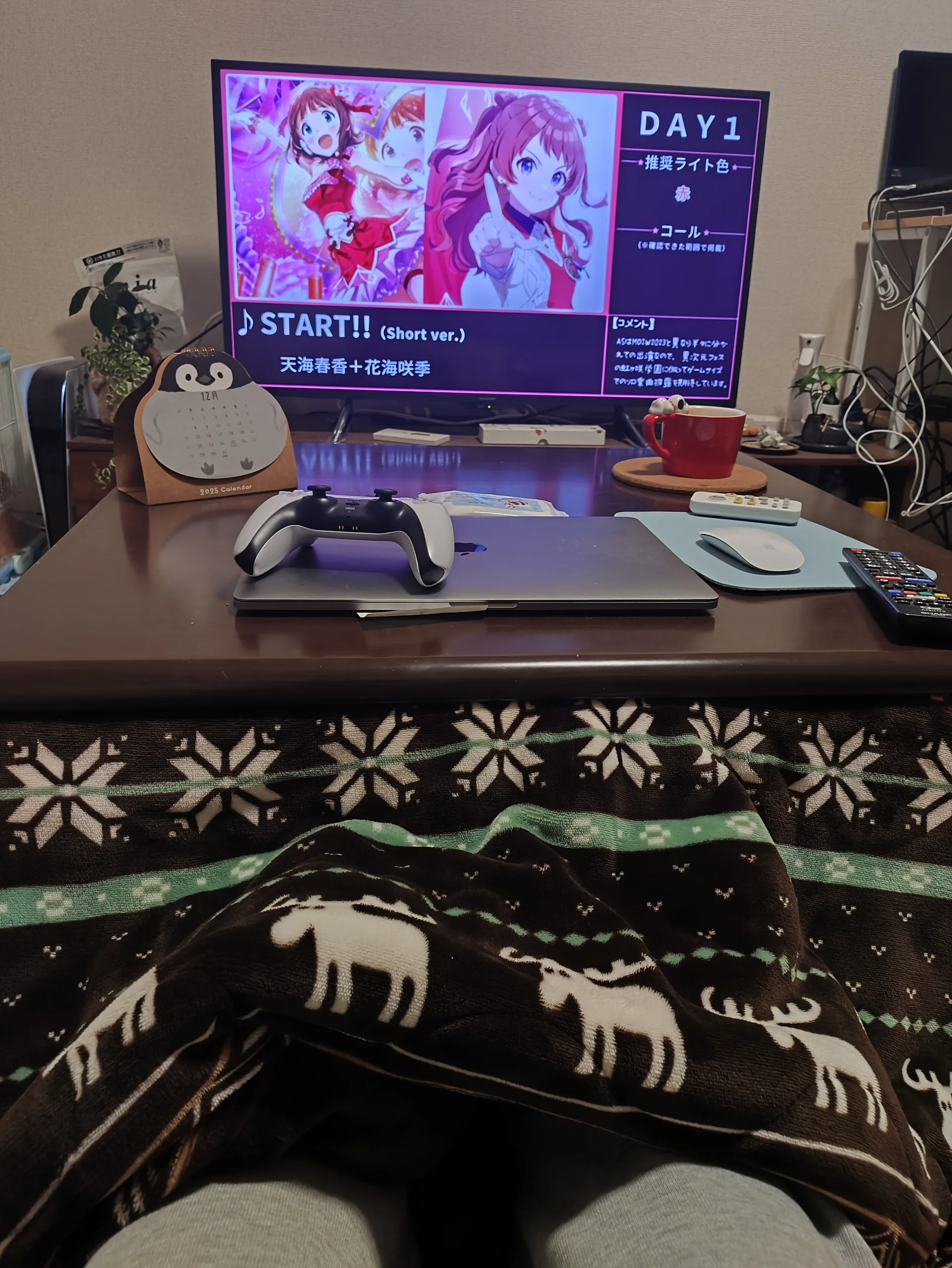 等到了住处,朋友给我打开了PS5让我看看有没有什么想看的东西。我也不怎么看新闻,所以我打开了MOIW25的预习歌单开始听。