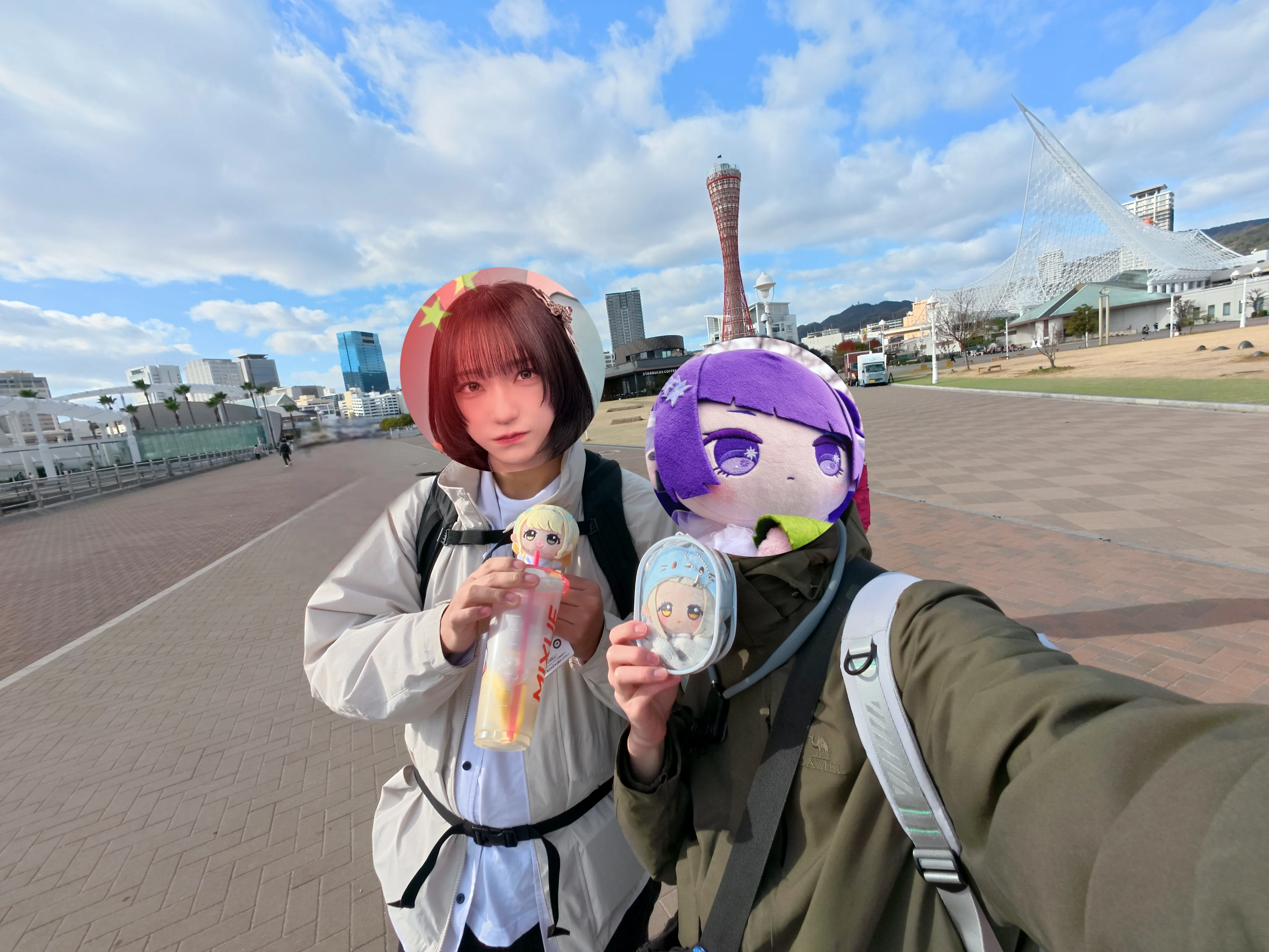 这个地方也是去年我来过的地方了,天气好的美利坚公园可以无脑来。虽然说今天的天确实是还算挺晴的,但是架不住冷风呼呼的吹。我们在BE KOBE的标志前面拍了个照就已经冷的受不了了,于是赶忙往那家经典的神户星巴克里钻。