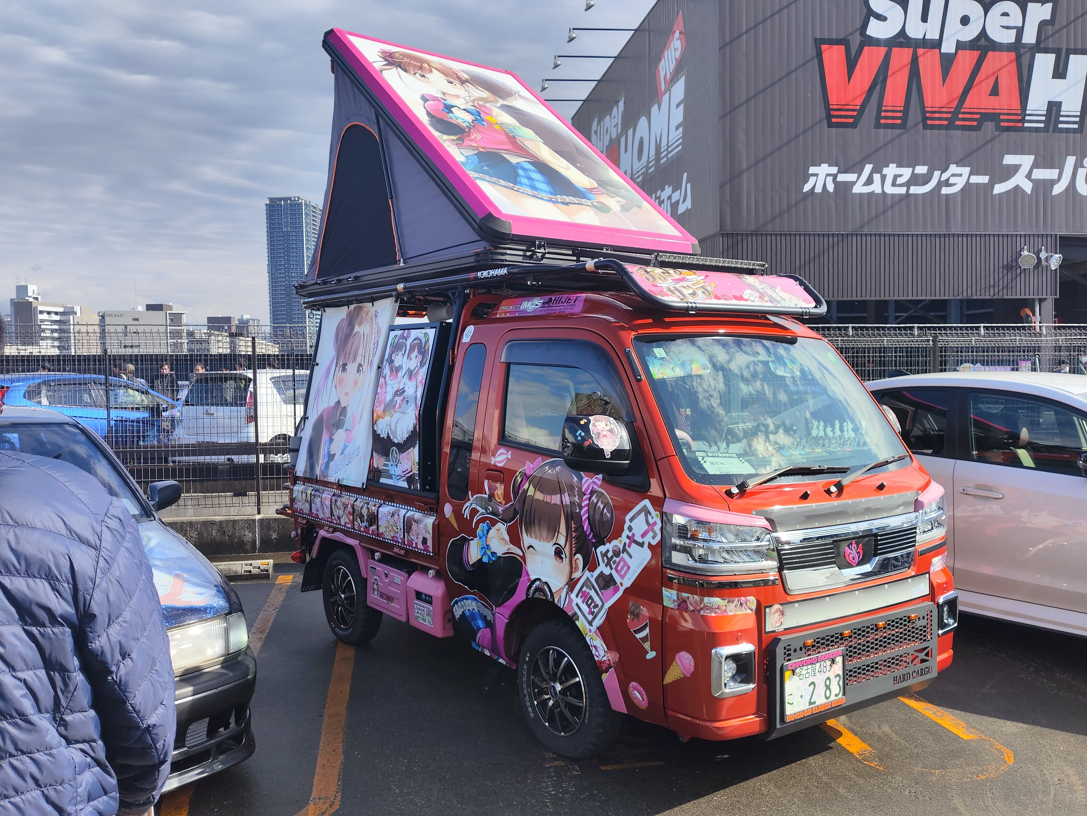 在打卡的时候,最后一个打卡点是真哥哥的,设置在屋顶的痛车展示会场。