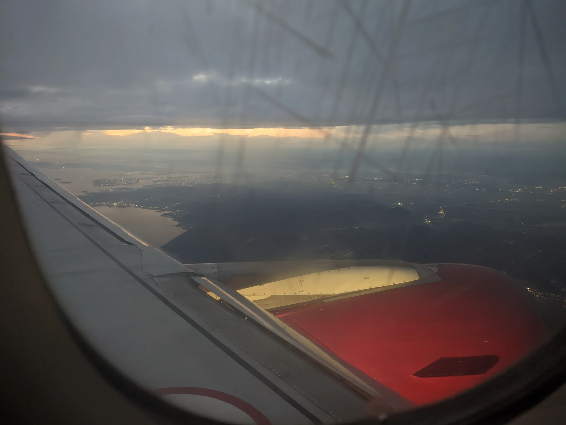 坐上了飞机之后,本来想睡个觉,但是可能是因为早上和中午喝茶喝多了,所以一直睡不着,索性就爬起来看闪5.5th的视频。看着看着又继续犯困,就这么反反复复,终于到了神户的上空。
