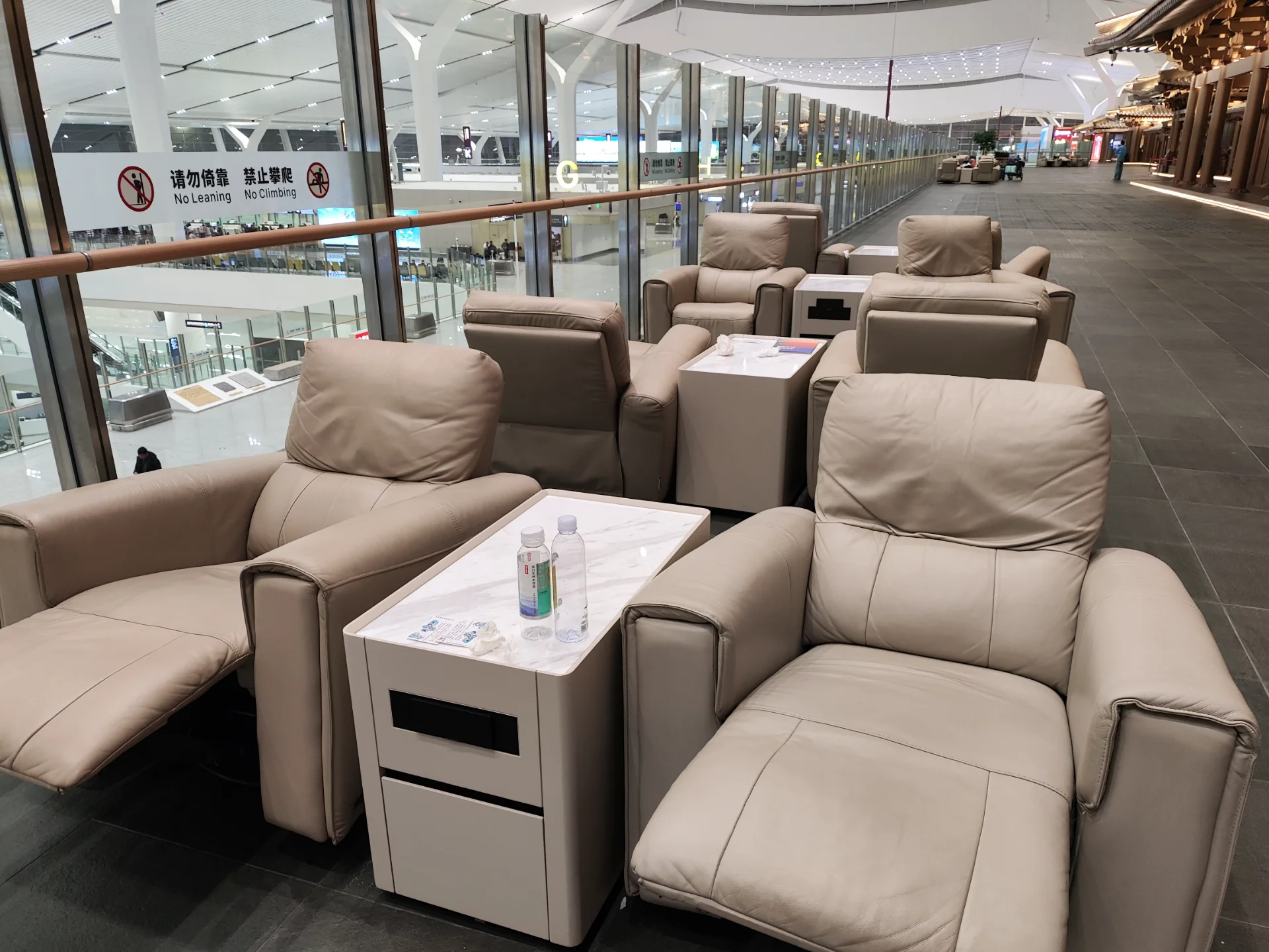 实际体验下来,这个位置确实非常舒服,可以做到大概120~150度左右的躺平。而且沙发很软,即使是在冬天的12月,机场里的暖气开的也非常足,只需要穿两件衣服差不多就可以正常的过夜了。